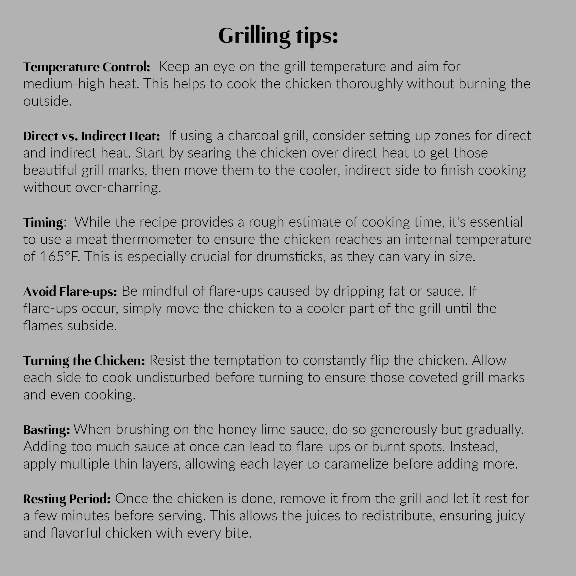 - To whip up these honey lime chicken wings and drumsticks, start by preheating your grill to medium-high heat.